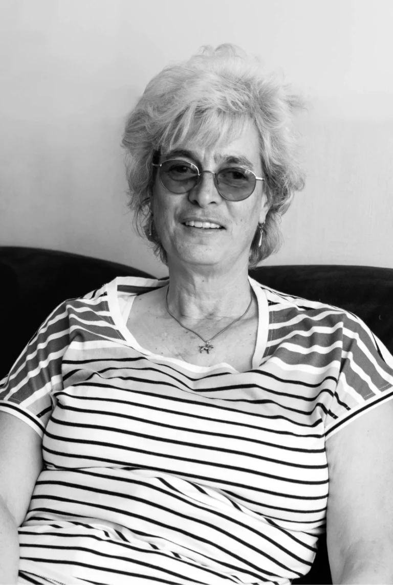 Elma Gelens (55) werkt als software ontwikkelaar in de huisartsenzorg. Ze houdt van fietsen op haar duofiets, zeilen en skiën. Daarnaast gaat ze graag naar buiten, samen met haar blindengeleidehond. Elma heeft een erfelijke oogziekte waardoor haar zicht vanaf jonge leeftijd steeds verder achteruit is gegaan. Sinds 20 jaar is ze volledig blind.